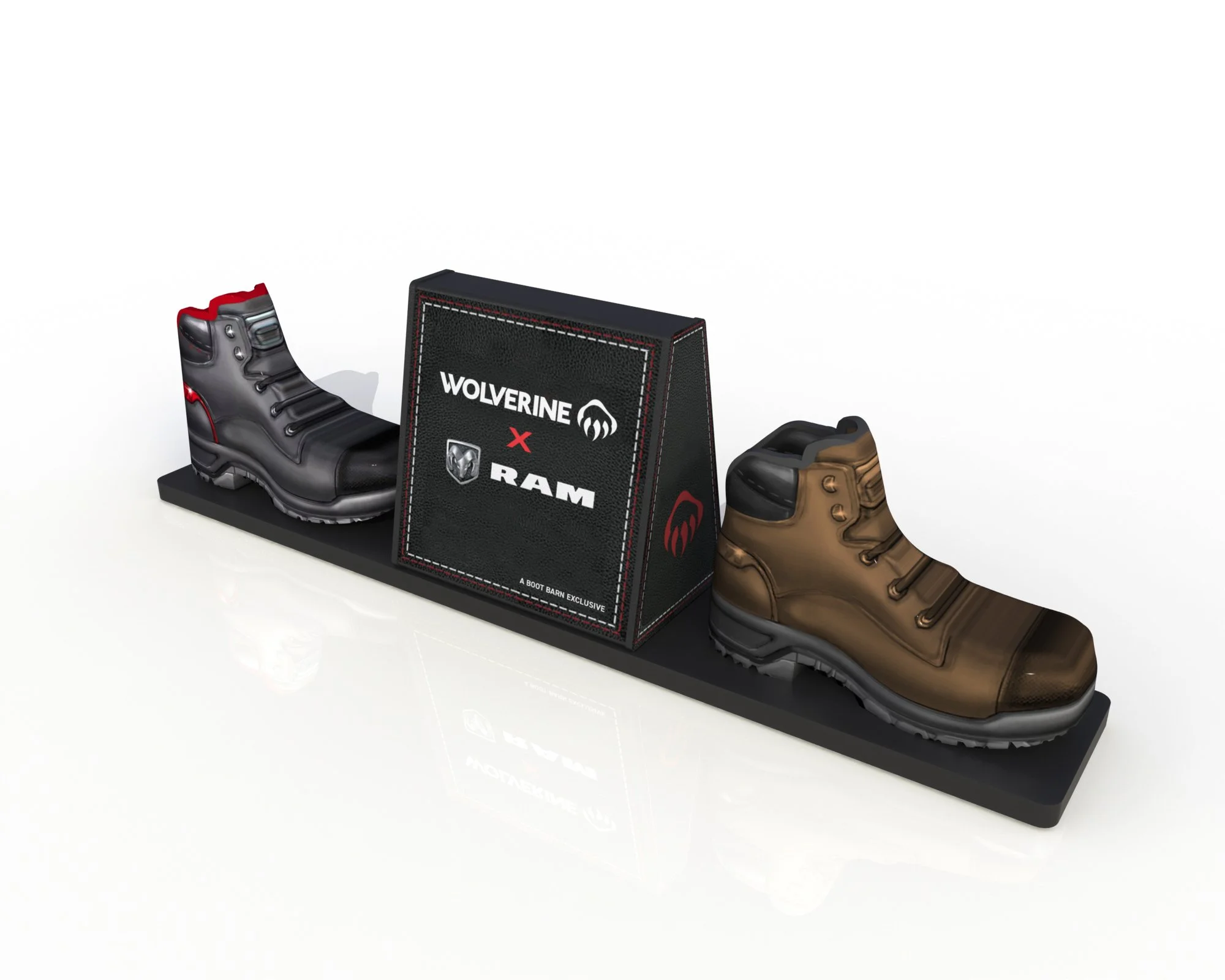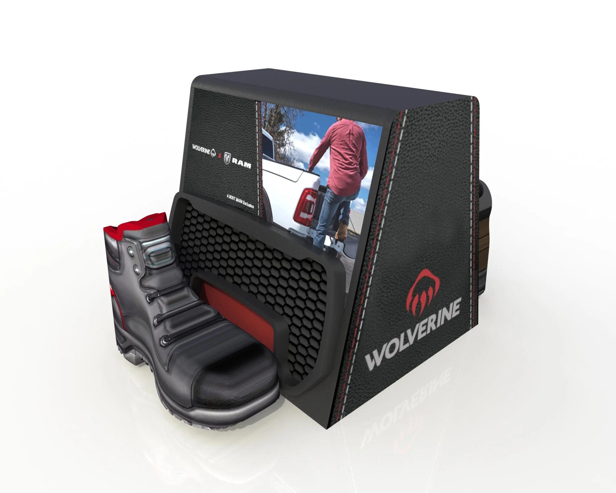 Axis Display Group built a retail display system that blended Wolverine’s grit with RAM’s utility. Tread lines, leather textures, stitching, and grille patterns turned heads—but more importantly, they turned recognition into engagement. Shoppers knew the narrative before reading ever reading a word.
